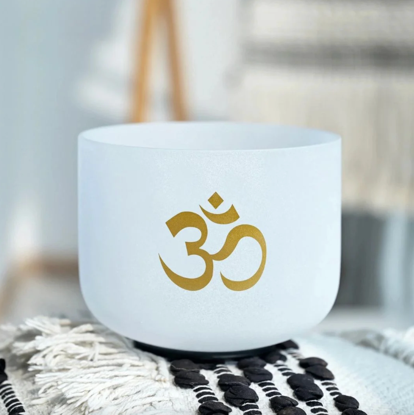Entdecke den bezaubernden Charme unserer Kristall-Klangschale mit OM-Symbol.