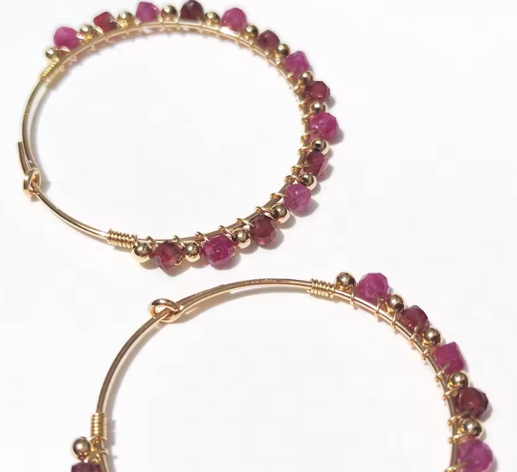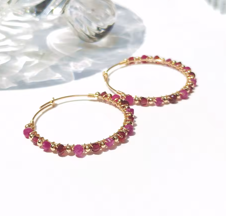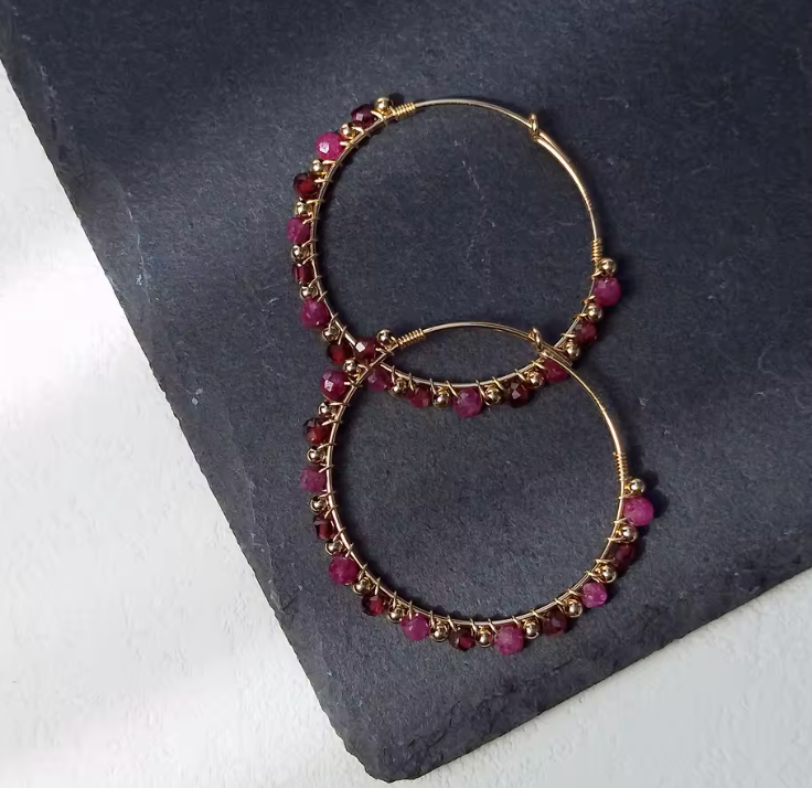 Granat Hoop – Handgefertigte Ohrringe aus natürlichem Edelstein & vergoldetem 925er Silber