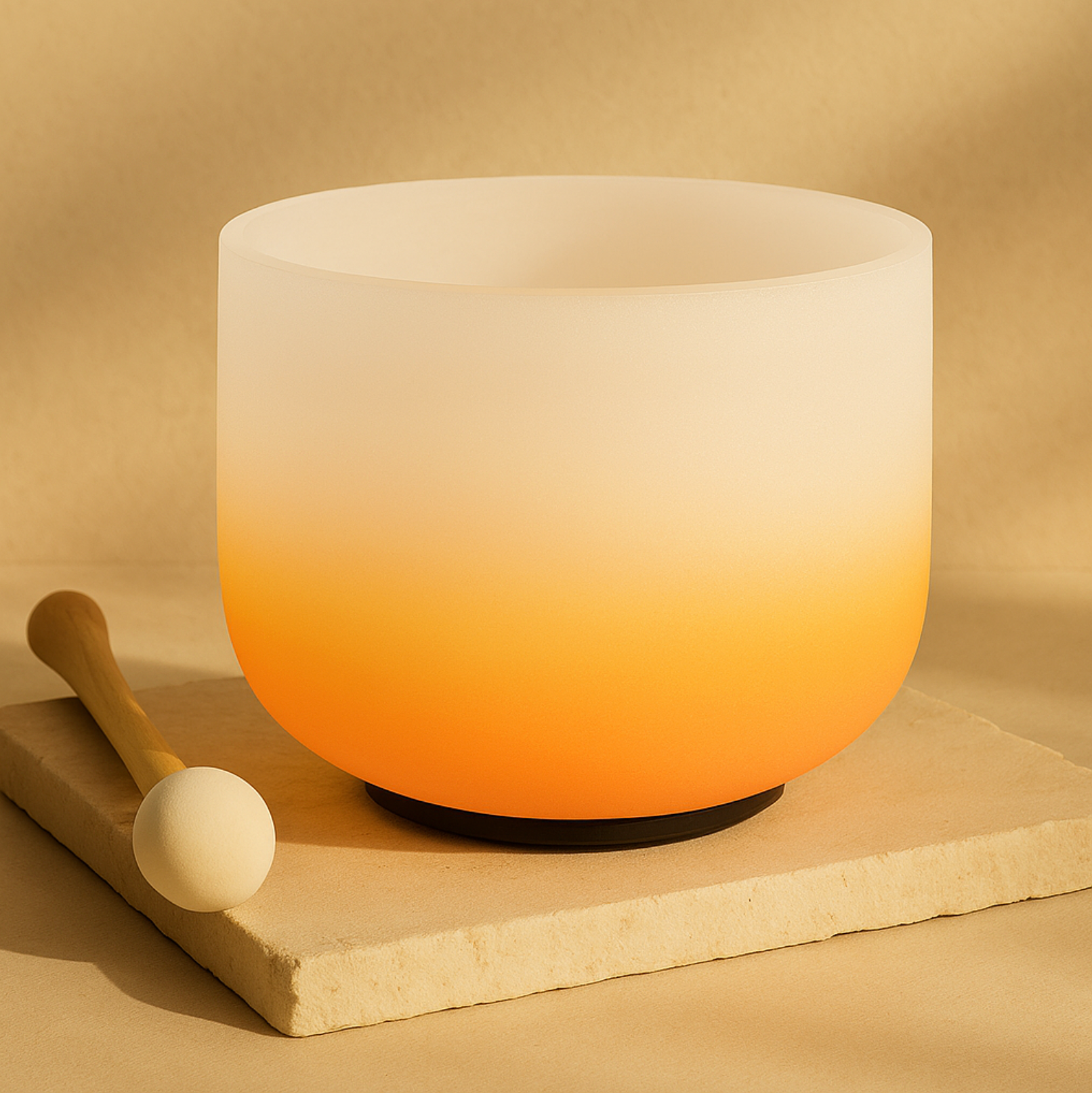 Gefertigt aus 99 % reinem Kristall, begeistert diese Schale durch außergewöhnliche Klangklarheit und reine Resonanz. Ihr sanfter oranger Farbverlauf erinnert an den Sonnenaufgang und die Lotusblüte – Farben, die Vitalität, Wärme und Erneuerung verkörpern.