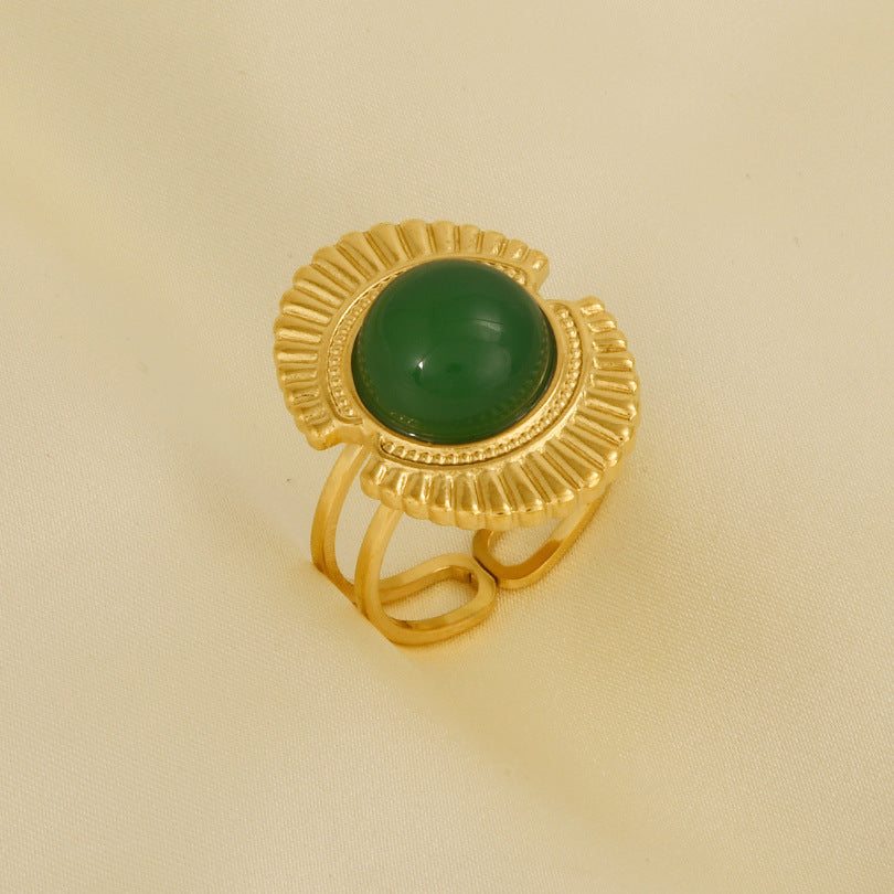 Der Divine Aura Ring ist mehr als nur ein goldenes Statement-Piece – er ist ein kraftvoller Begleiter, der dich mit der Energie natürlicher Edelsteine verbindet und deine persönliche Ausstrahlung stärkt.