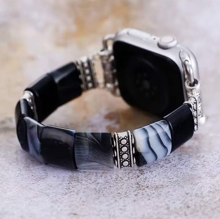 Wir bieten Onyx-Armbänder, Mala-Ketten, Halsketten und Ringe – jedes Stück handgefertigt!
