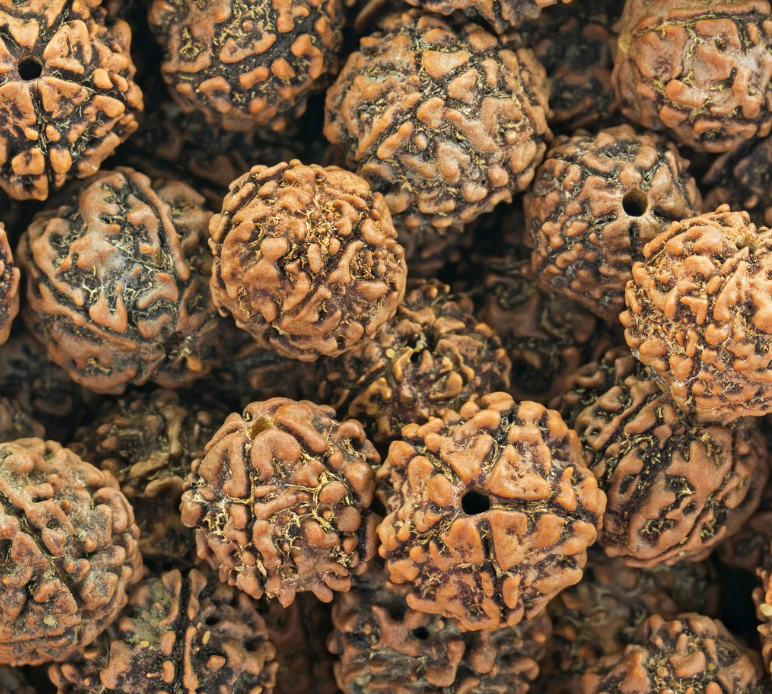 Rudraksha fördert Ruhe, Schutz und spirituelles Wachstum – ideal für Meditation.