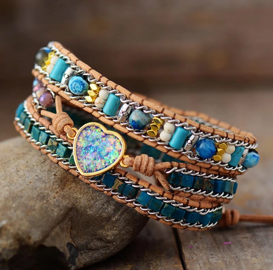 Wir bieten Opal-Armbänder, Mala-Ketten, Halsketten und Ringe – jedes Stück handgefertigt!