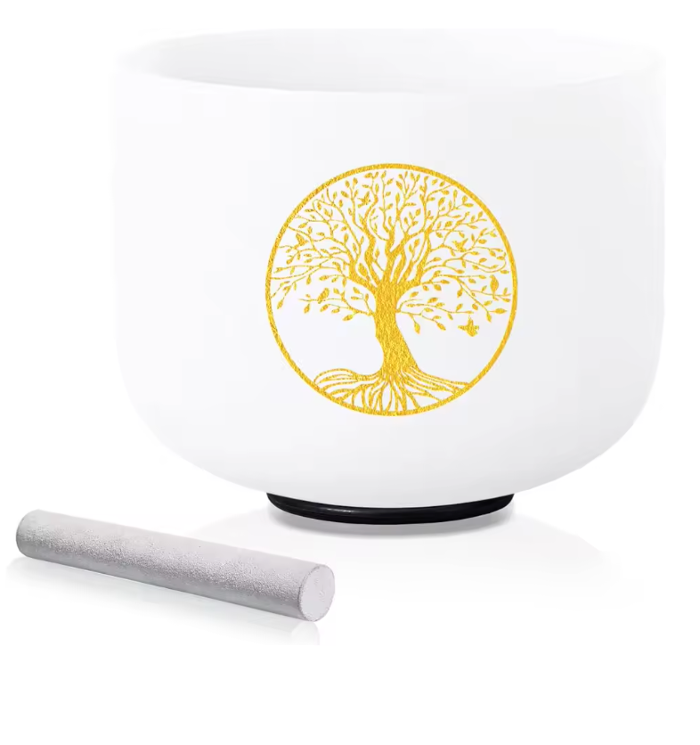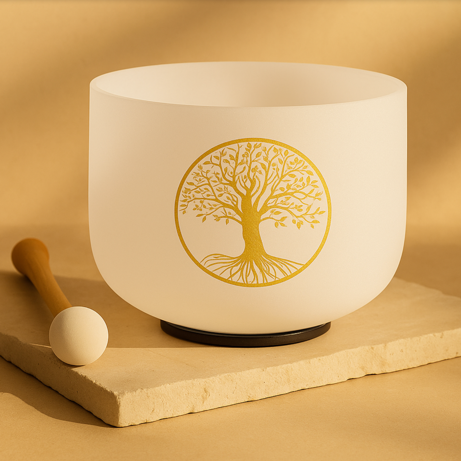 Diese edle Klangschale besteht zu 99 % aus reinem Kristall, was eine außergewöhnliche Klangklarheit und eine intensive, weittragende Resonanz ermöglicht. Verziert mit einer filigranen goldenen Gravur des „Baums des Lebens“, vereint sie Ästhetik, Spiritualität und höchste Klangqualität in einem einzigen Kunstwerk.