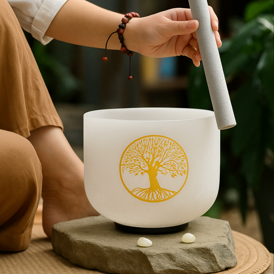 Kristall-Klangschale aus Quartz – „Baum des Lebens“